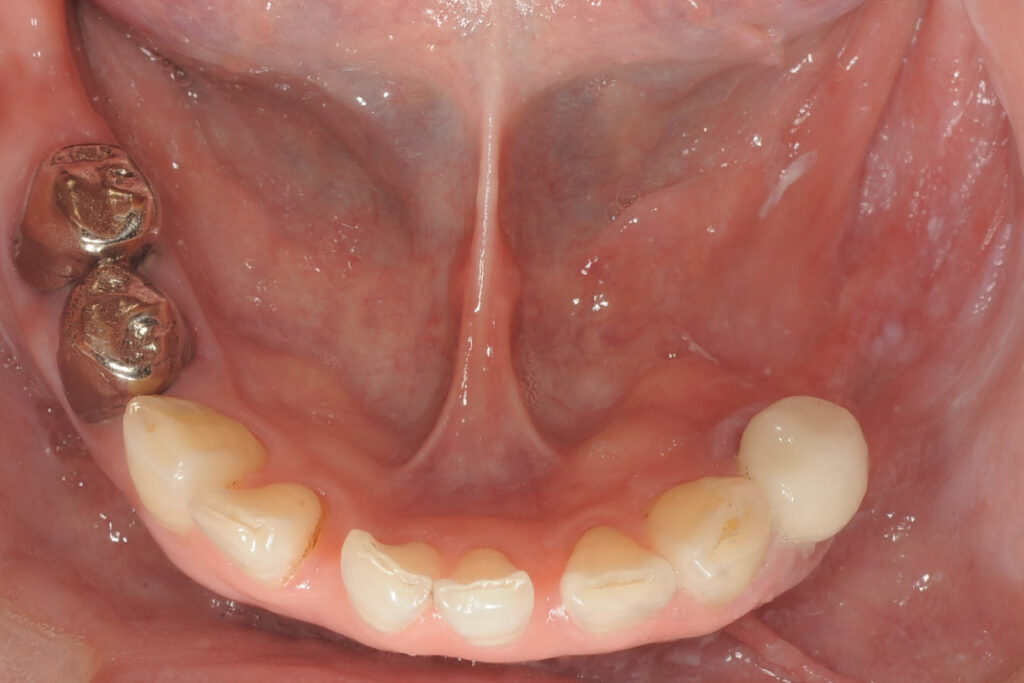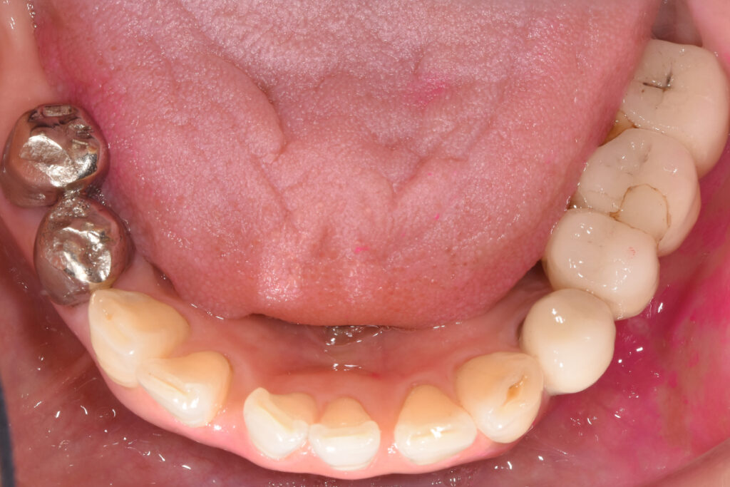 50代女性。下顎奥歯の欠損。片側咀嚼が続き、噛み合わせ全体への不安が強まっていました。他院でインプラント相談を行いましたが、「骨量が足りないため難しい」と説明され、治療を断念しました。